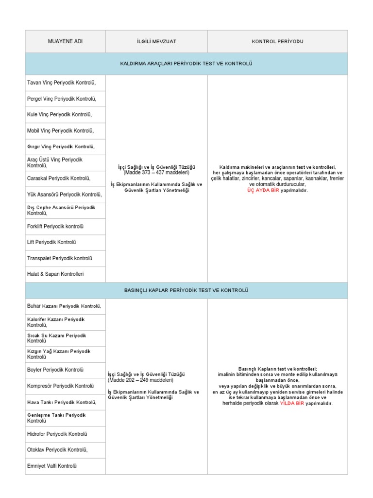 Basınçlı kap ekipman ve tesisatlarının periyodik kontrol aralığı ve kriterleri standartlar ile belirlenmemiş iş ekipmanlarının periyodik kontrolleri varsa imalatçının öngördüğü aralık ve kriterlerde yapılır. 90 551 652 61 85 müşteri hizmetleri. Faaliyetlerine 2014 yılında kuruluşu ile başlamıştır. çünkü makinelerin temel olarak zamanla kullanılması bir zaman sonra çeşitli problemlerin oluşmasına zemin.
