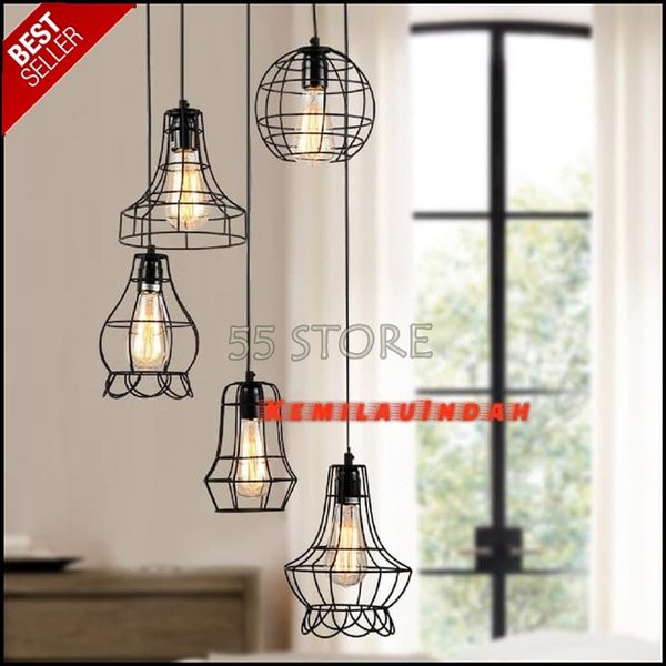 kap cover lampu gantung hias cafe vintage besi model kubus hitam