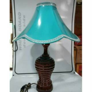 kap lampu meja kayu jati dengan tudung