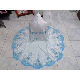 beyaz renklerde mavi kapsonlu triko kap