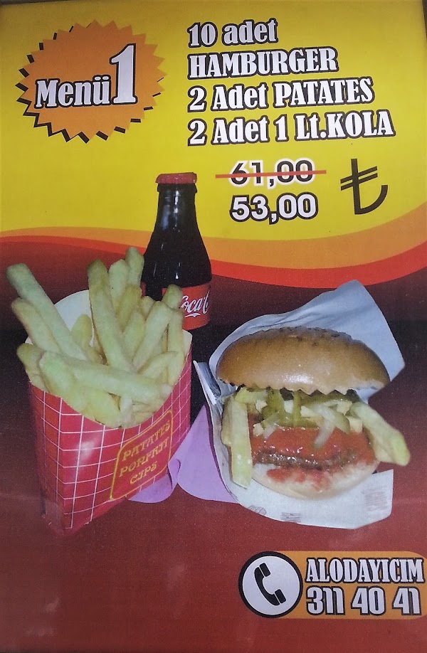 Any meal from the menu delivered right to your door. 2 adet hamburger 2 adet sosisli sandviç 2 adet patates kızartması coca cola 1 l 45 00 tl. Restoran cevabı afiyet olsun efendim.